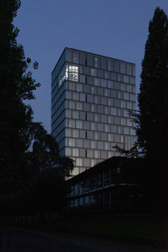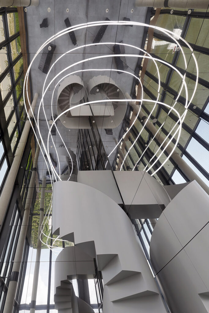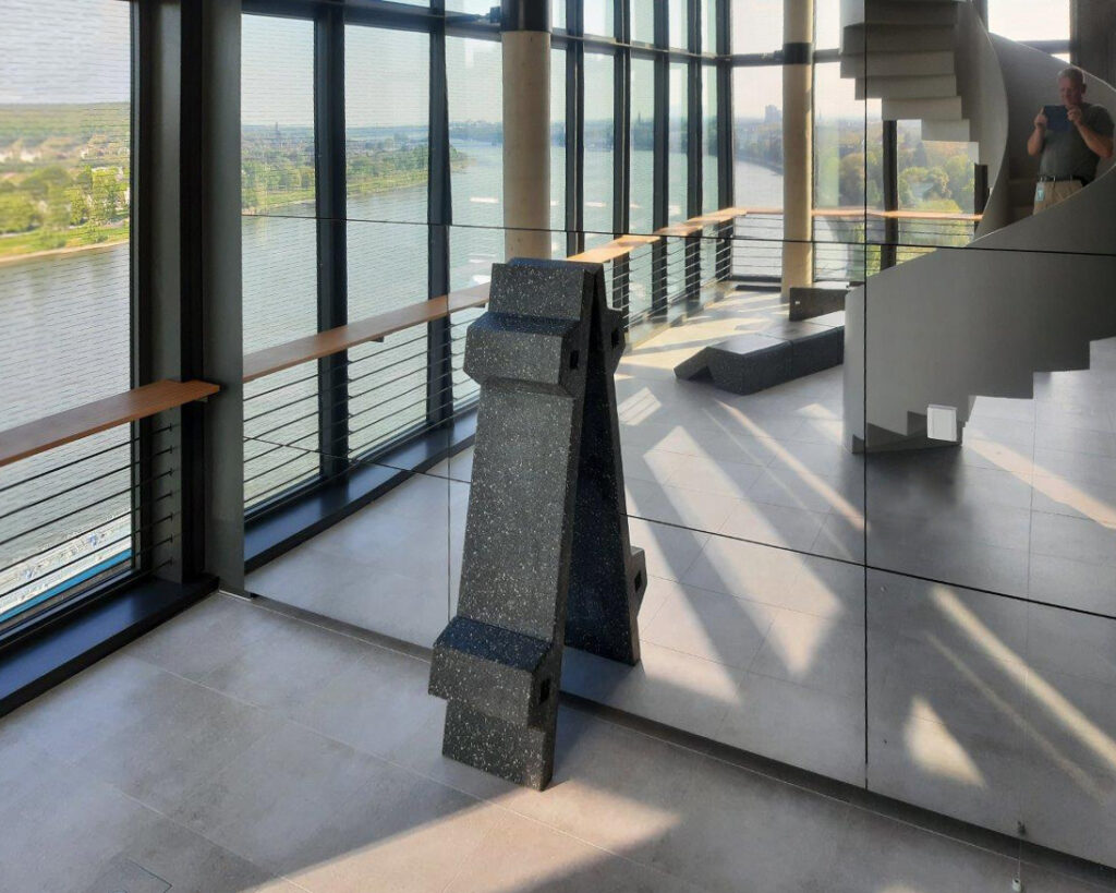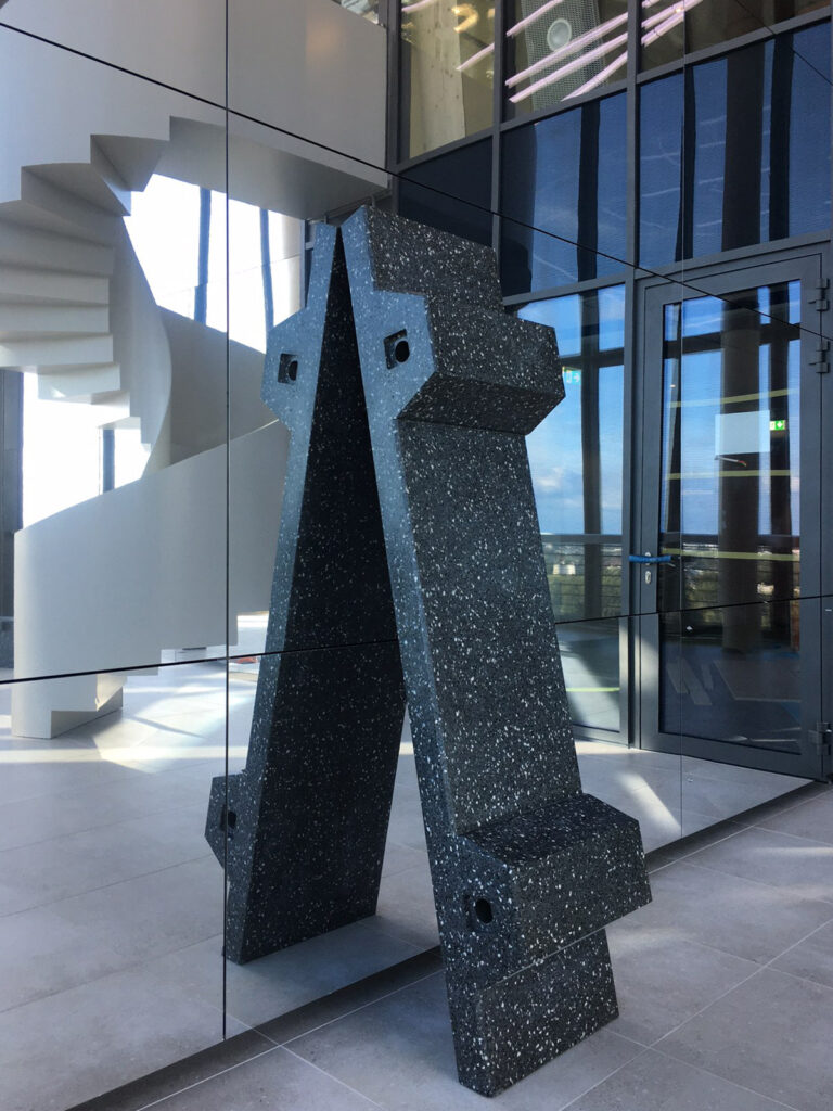 Szene mit vier Fragmenten und einer WolkeUN Campus Bonn Completion 2021 Mirror, concrete, led In co-op with Candy Lenk, Fotos 2,5,6: Candy Lenk, Fotos 1,3: Guido Teschner